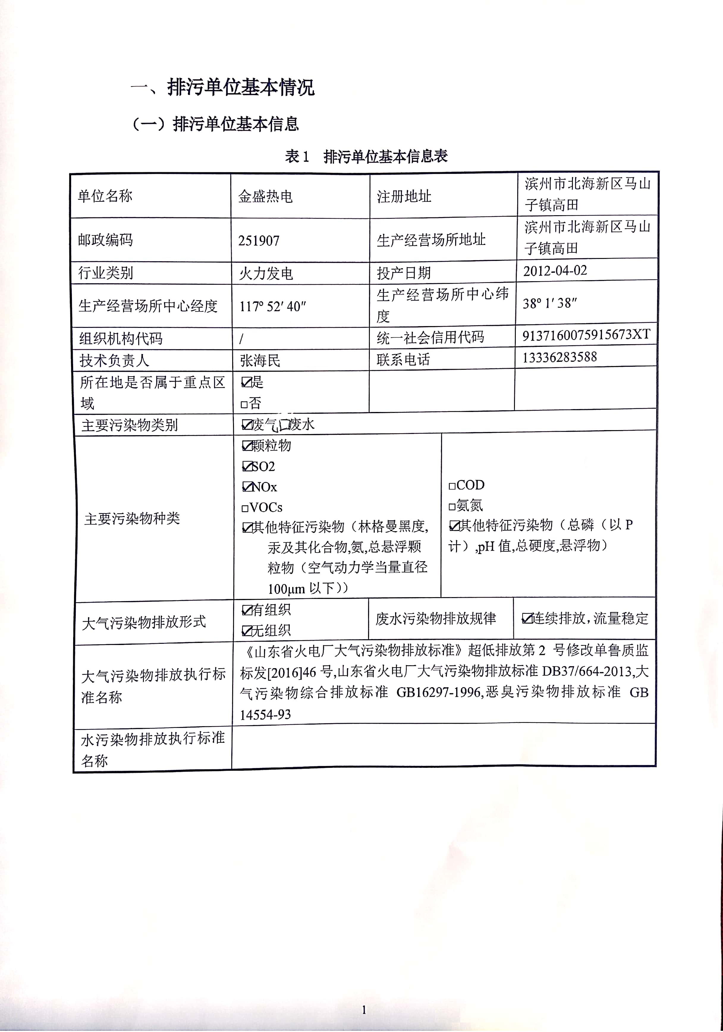 金盛海洋科技有限公司排污单位信息表-汇泰投资集团股份有限公司